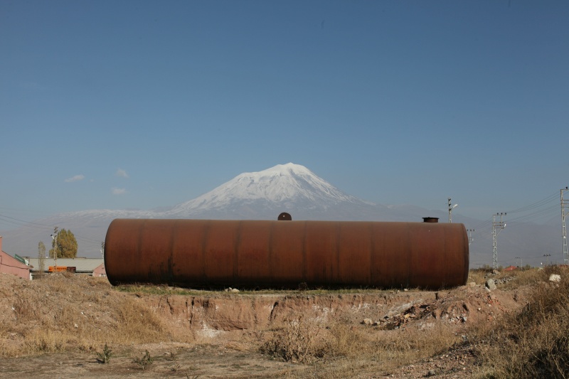 Cette photographie, avec un cadrage très semblable à celui de l'image de la semaine, est prise avec plus de recul. Le premier plan est plus important, diminuant la place du ciel. Le mont Ararat est plus centré par rapport à la verticale, marquant donc plus l'image. Les deux images sont de qualité équivalente et justifiant la même notation. Je préfère la première qui rend plus présente cette cuve.