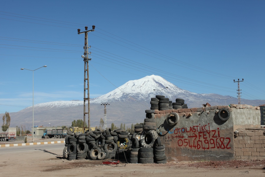 Le mont Ararat et les pneus - le 6 novembre 2010, Doğubayazıt, Kurdistan de Turquie